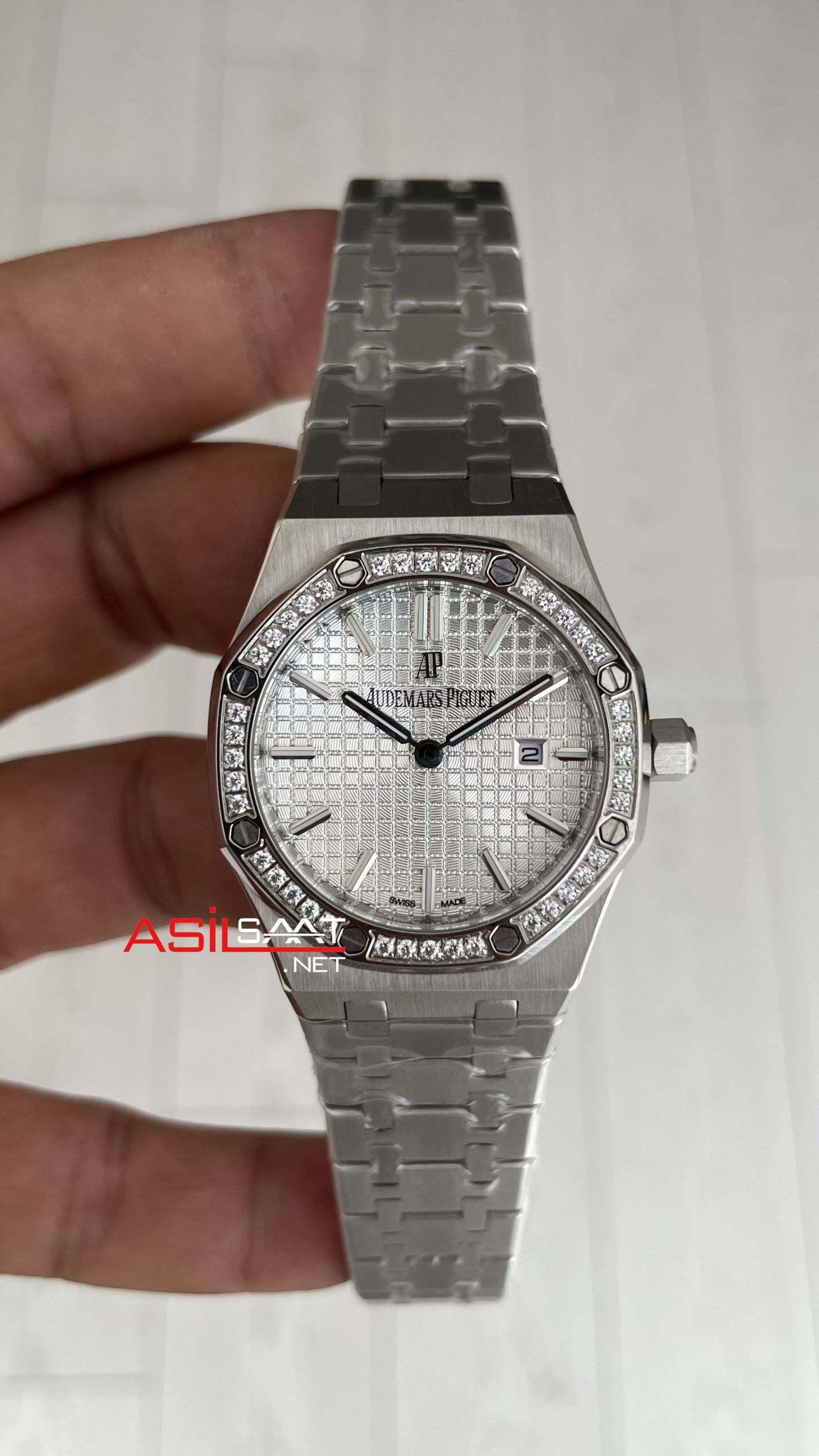 Audemars Piguet Royal Oak Lady Diamond Beyaz Kadran 67651ST Silver 33mm Kadın Replika Saat ! Zamansız Zarafet ve Lüksün Simgesi