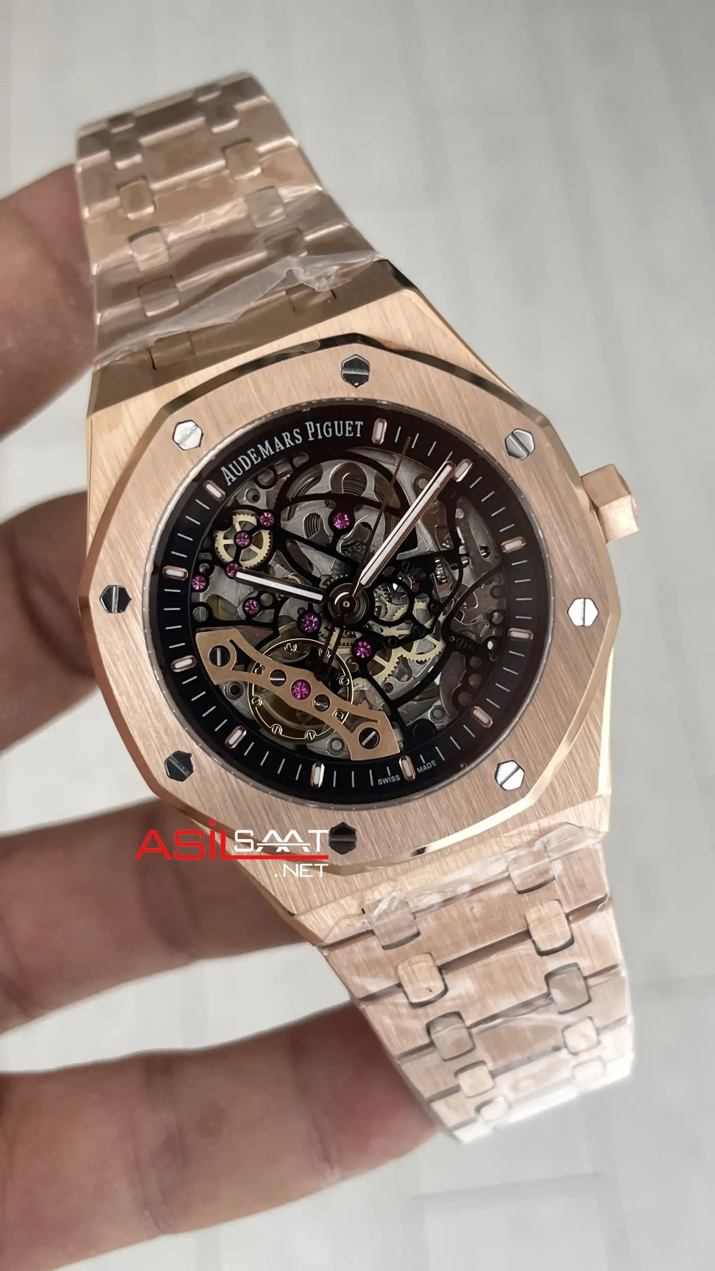 Audemars Piguet Royal Oak Skeleton 15407OR Double Balance iskelet Rose Replika Saat modeli bizim vitrin yüzümüz diyebileceğimiz kadar titizlikle ilgilendiğimiz saat tasarımıdır. Klasik ama dikkat çekici bir saat arayan, hem de günlük kullanıma uygun modern ve lüks saat isteyenler kişiler için tercihler arasında en önde gelen saat modelimizdir !