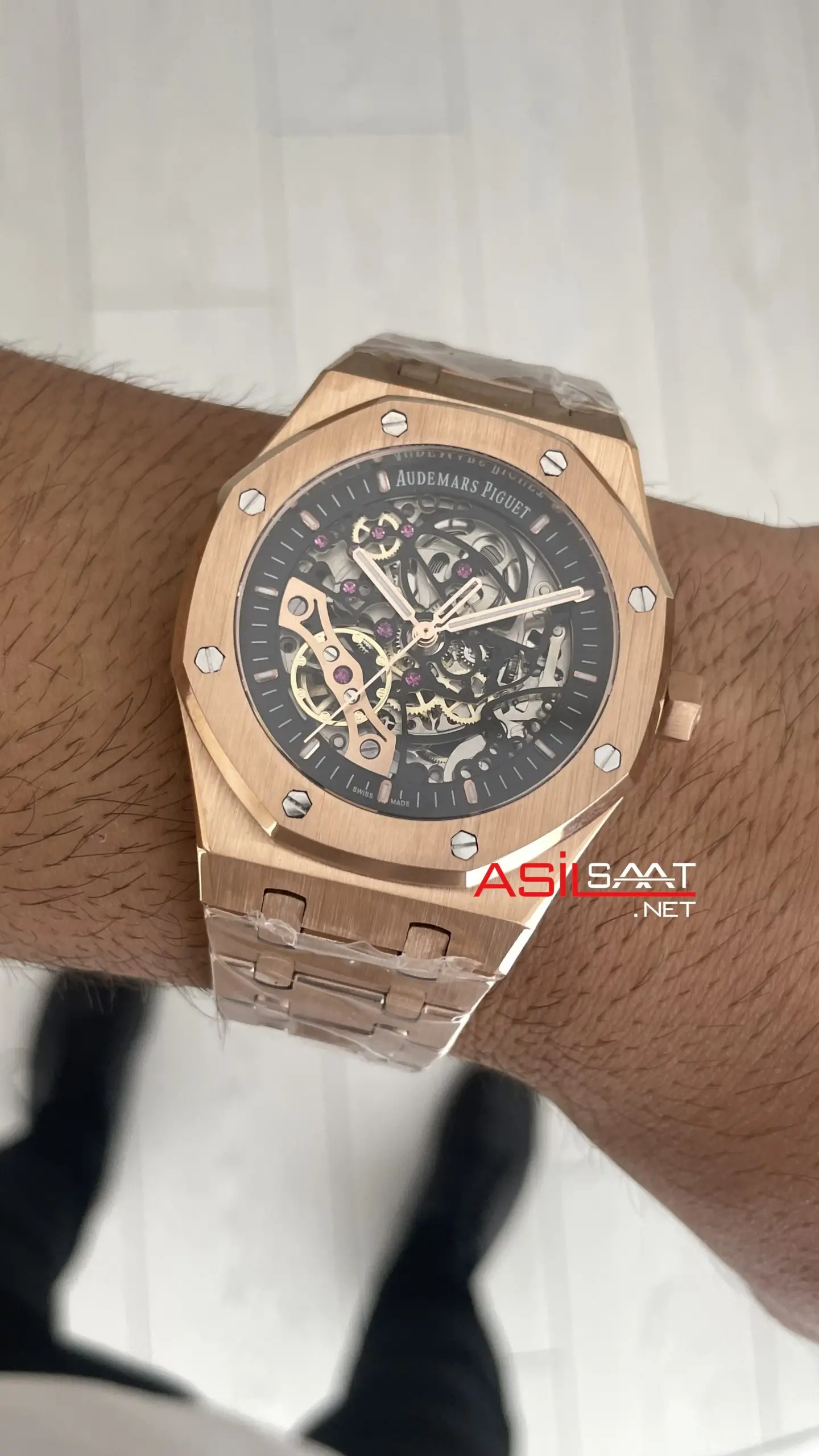 Audemars Piguet Royal Oak Skeleton 15407OR Double Balance iskelet Rose Replika Saat ! Lüksün ve Hassas Mühendisliğin Zirvesi