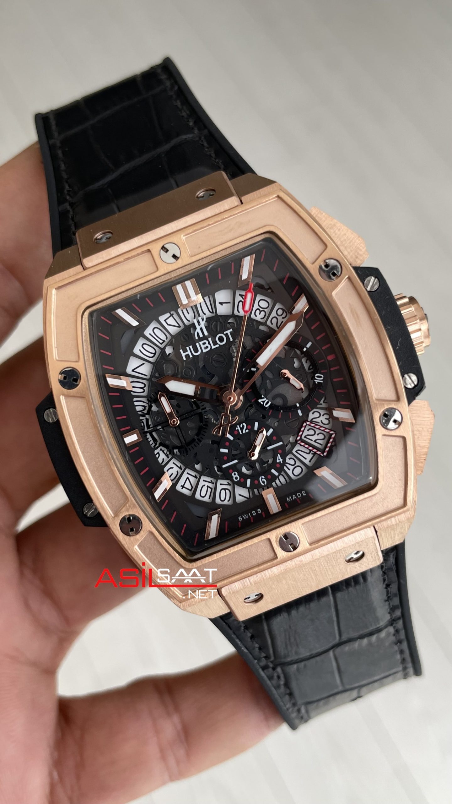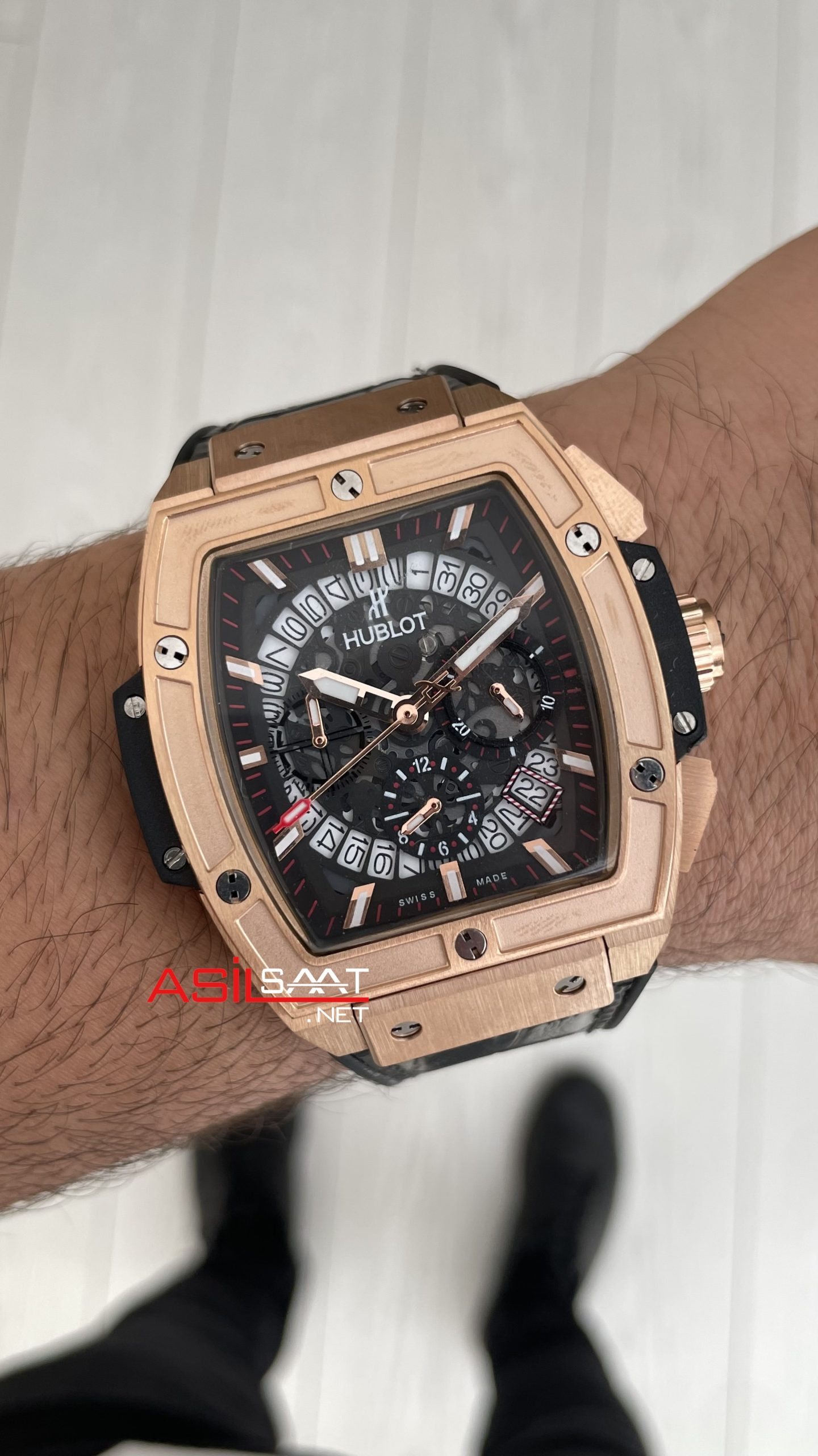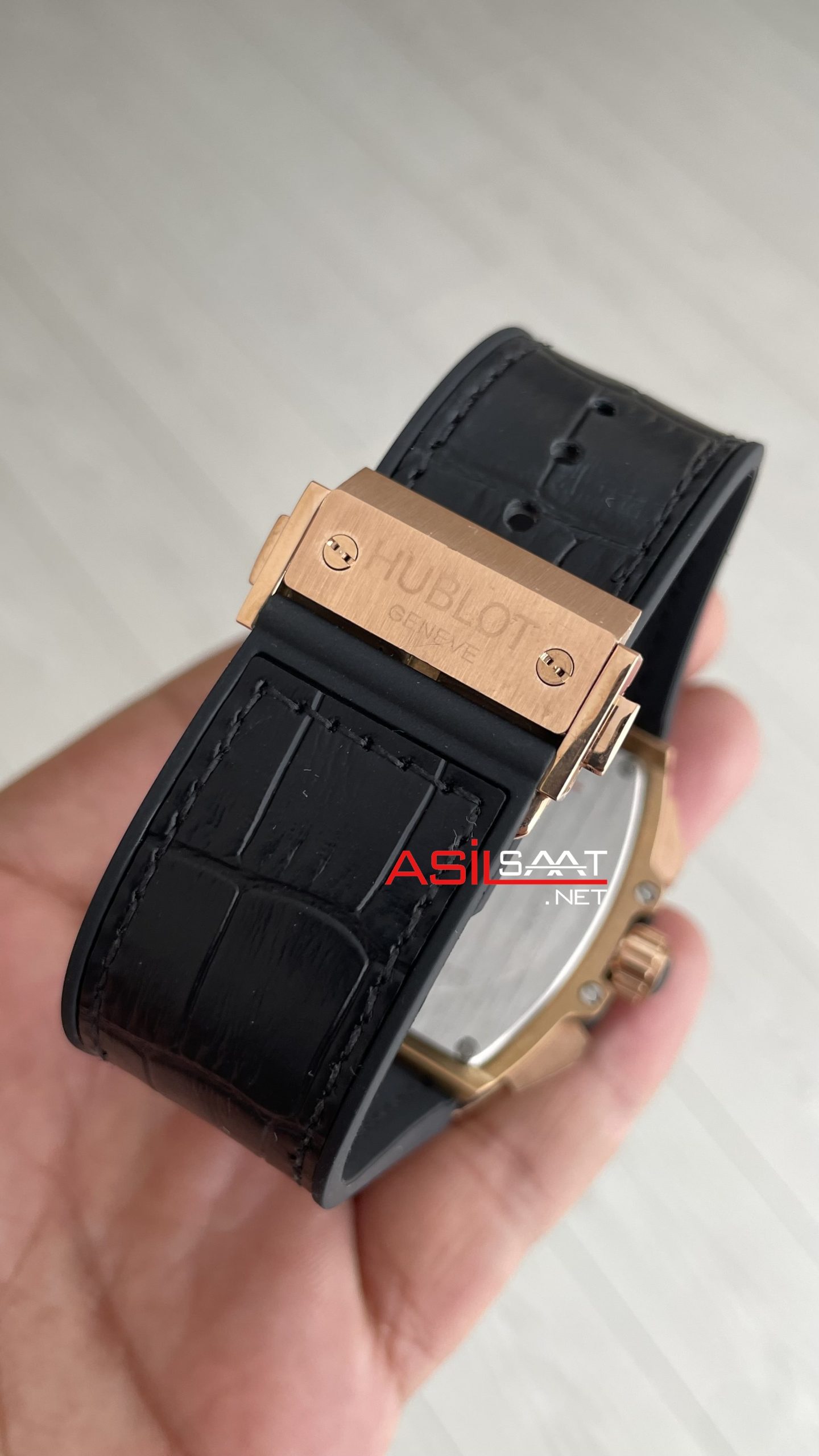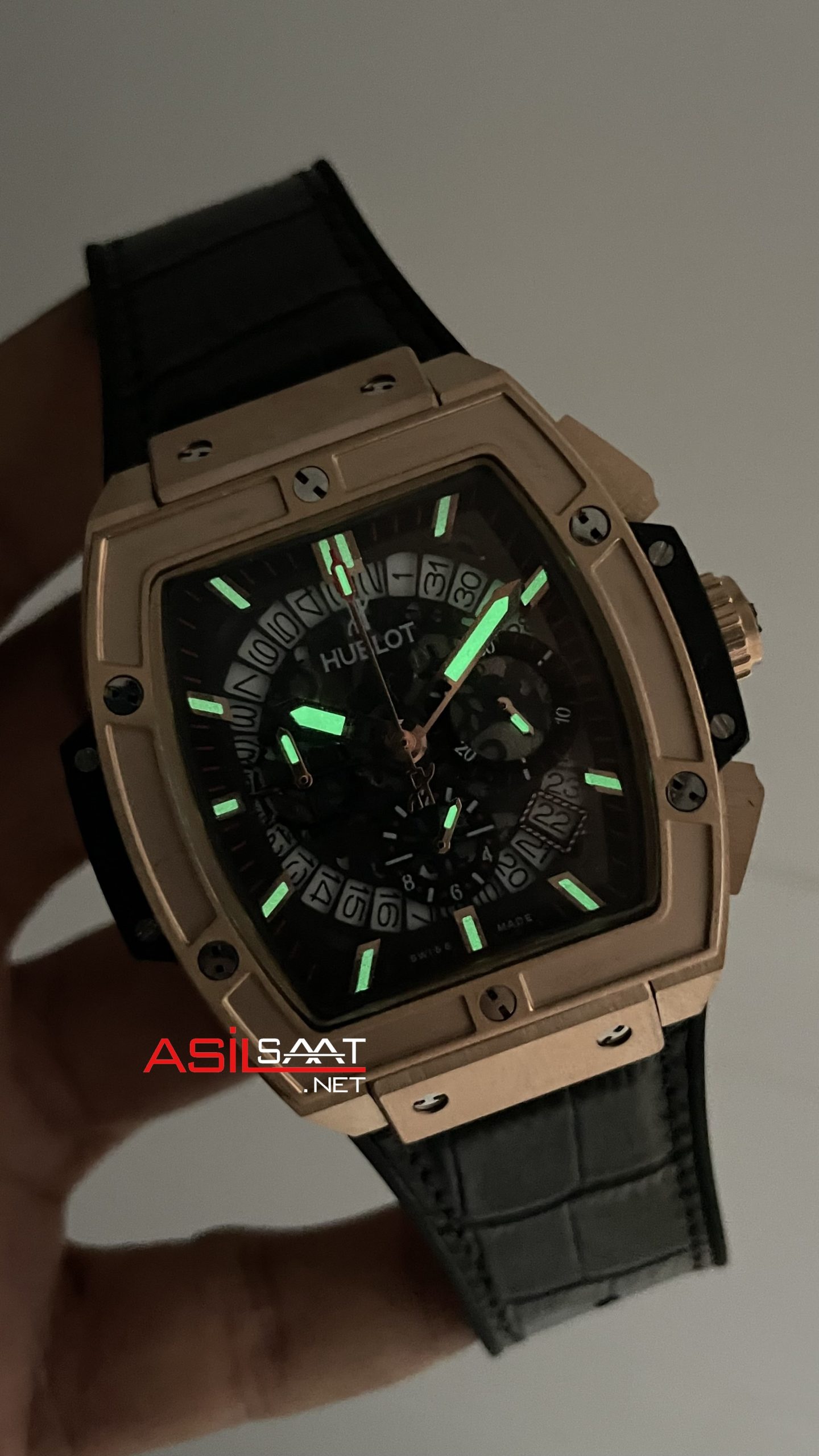 Hublot Spirit Of Big Bang Senna Champion Siyah 45mm Rose Replika Saat modeli, kendine has tarzıyla kalın kare kasası, deri kordonu, çelik bezeli, çift katmanlı bombeli safir camı ve camındaki hublot yazısı, çekmeli tepesi (kurma kolu), pilli vk63 mekanizması, katlanabilir tokası, mikron ayrıntıları ve fosforlu indexleri ve 45mm kasa çapı ölçüsü ile en çok talep edilen modellerimizden biri olmayı başarmıştır. Bu saatin paslanmaz çelik kasası ve deri kordonuyla dayanıklılığı, sağlamlığı ve kullanım kolaylığını bir arada sağlayarak saatin kullanımını daha keyifli ve kolay hale getiriyor.