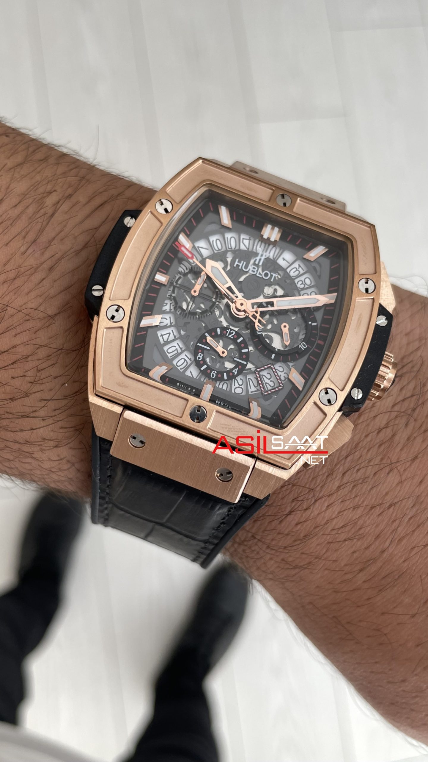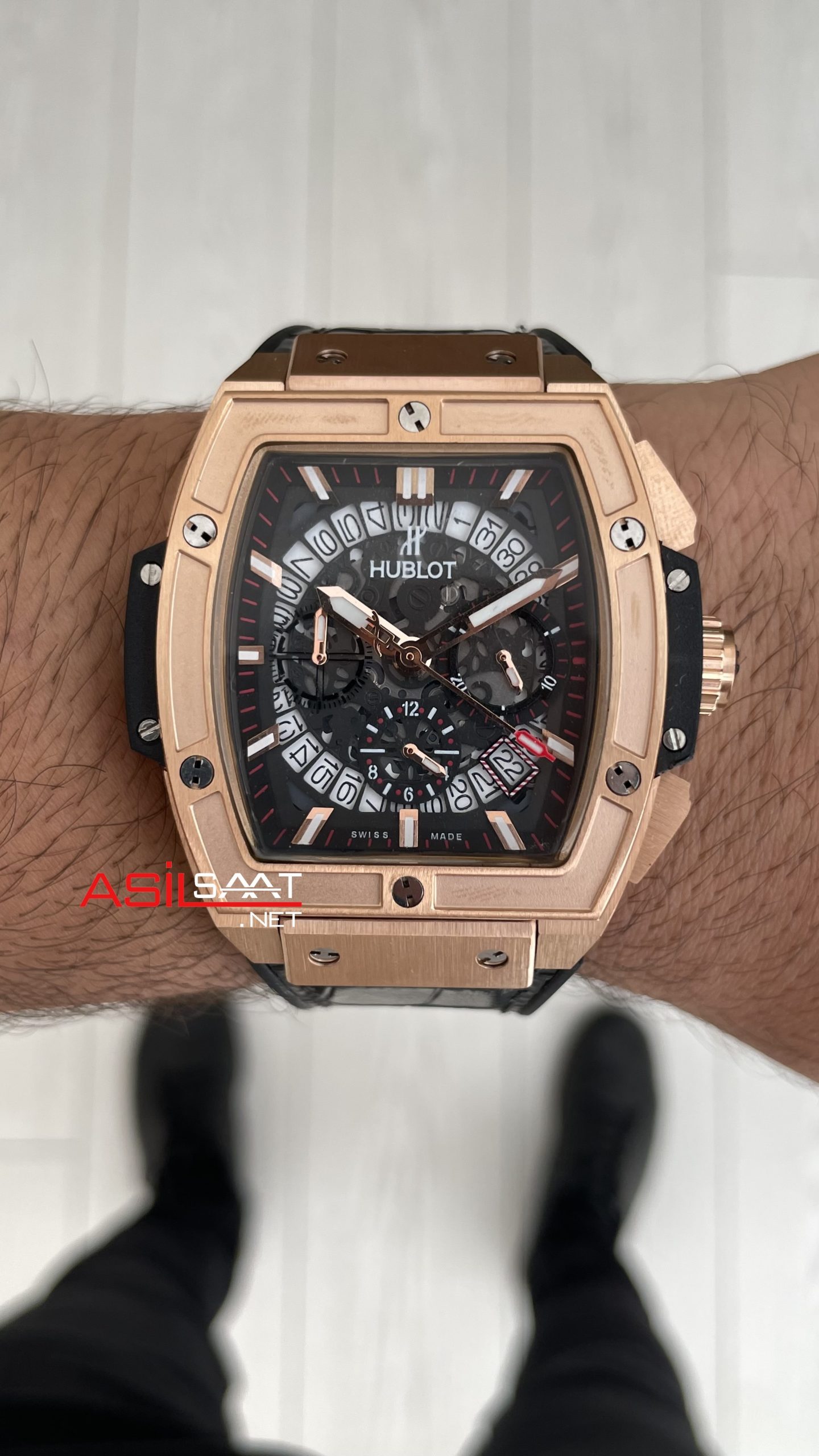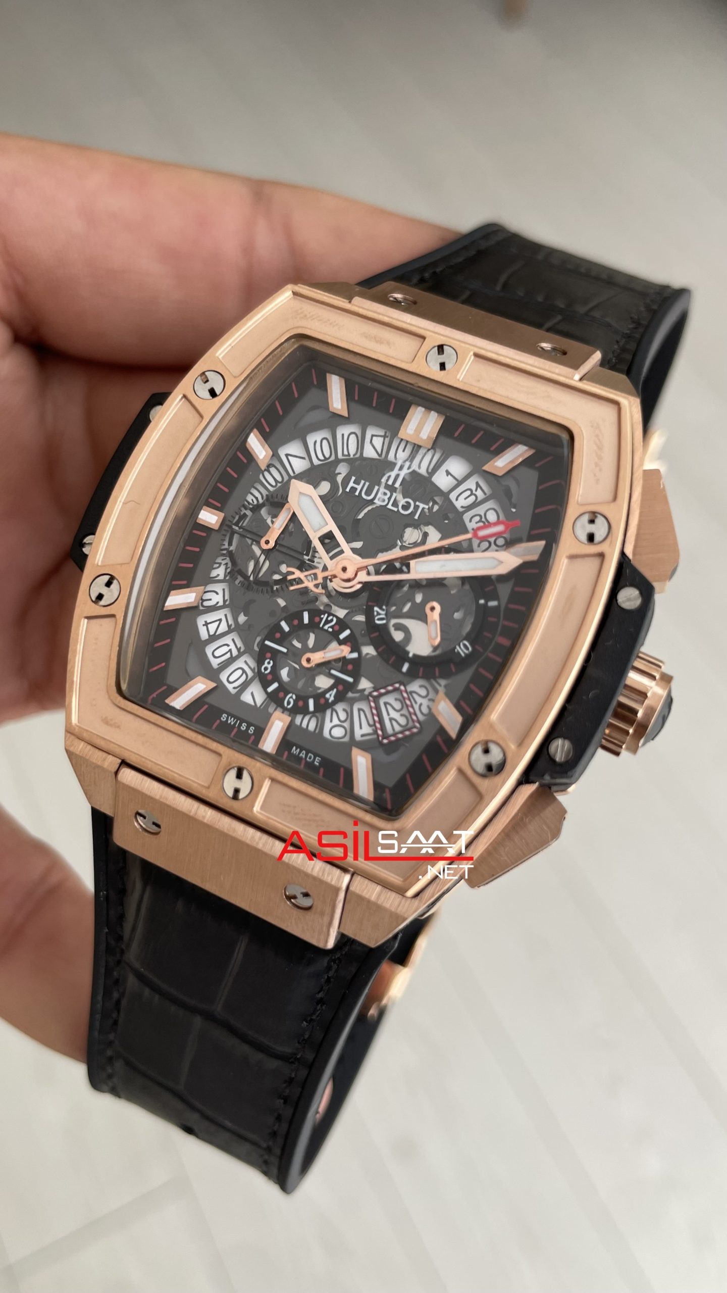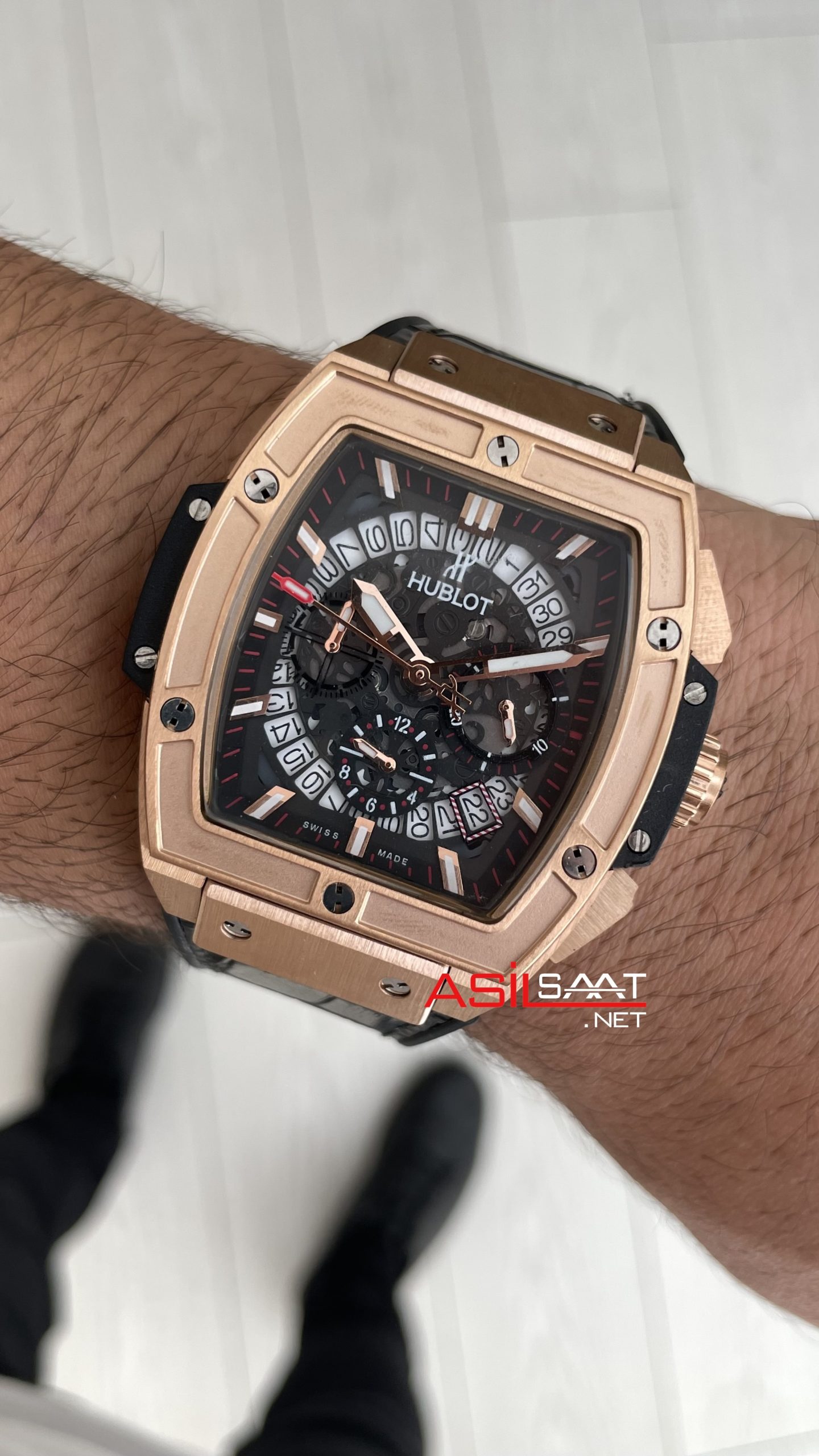 Hublot Spirit Of Big Bang Senna Champion Siyah 45mm Rose Replika Saat modeli, kendine has tarzıyla kalın kare kasası, deri kordonu, çelik bezeli, çift katmanlı bombeli safir camı ve camındaki hublot yazısı, çekmeli tepesi (kurma kolu), pilli vk63 mekanizması, katlanabilir tokası, mikron ayrıntıları ve fosforlu indexleri ve 45mm kasa çapı ölçüsü ile en çok talep edilen modellerimizden biri olmayı başarmıştır. Bu saatin paslanmaz çelik kasası ve deri kordonuyla dayanıklılığı, sağlamlığı ve kullanım kolaylığını bir arada sağlayarak saatin kullanımını daha keyifli ve kolay hale getiriyor.