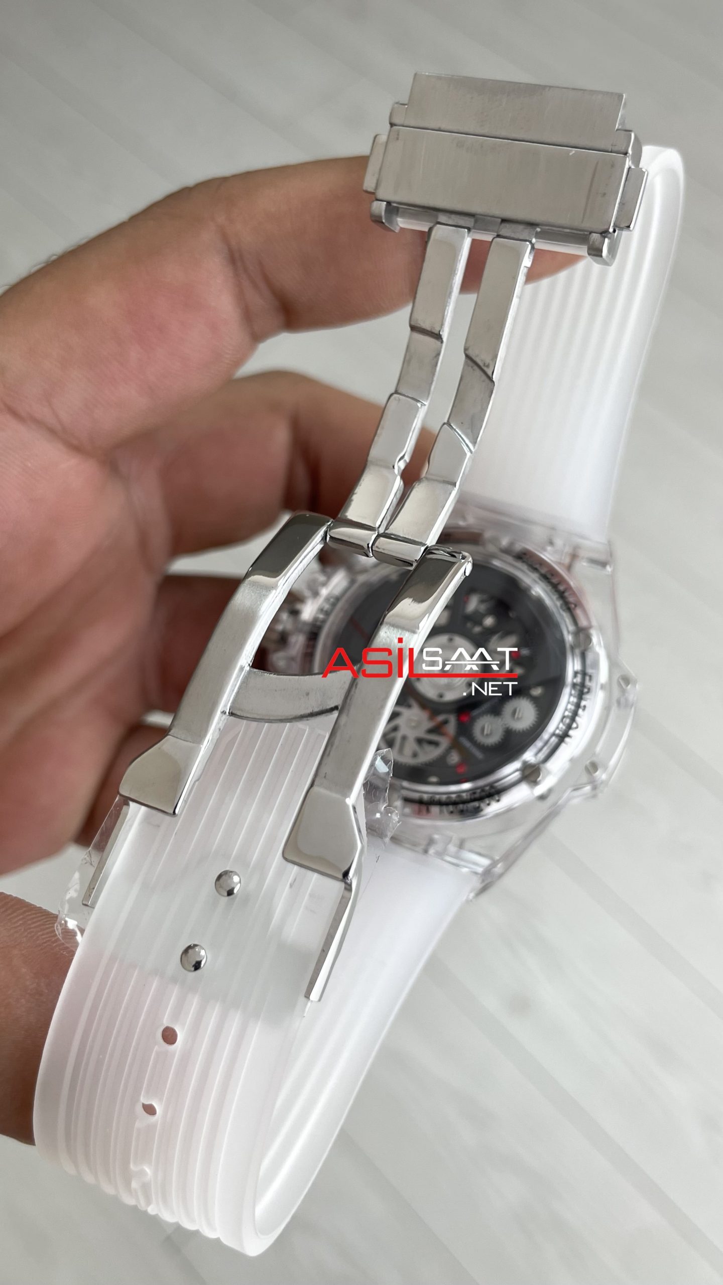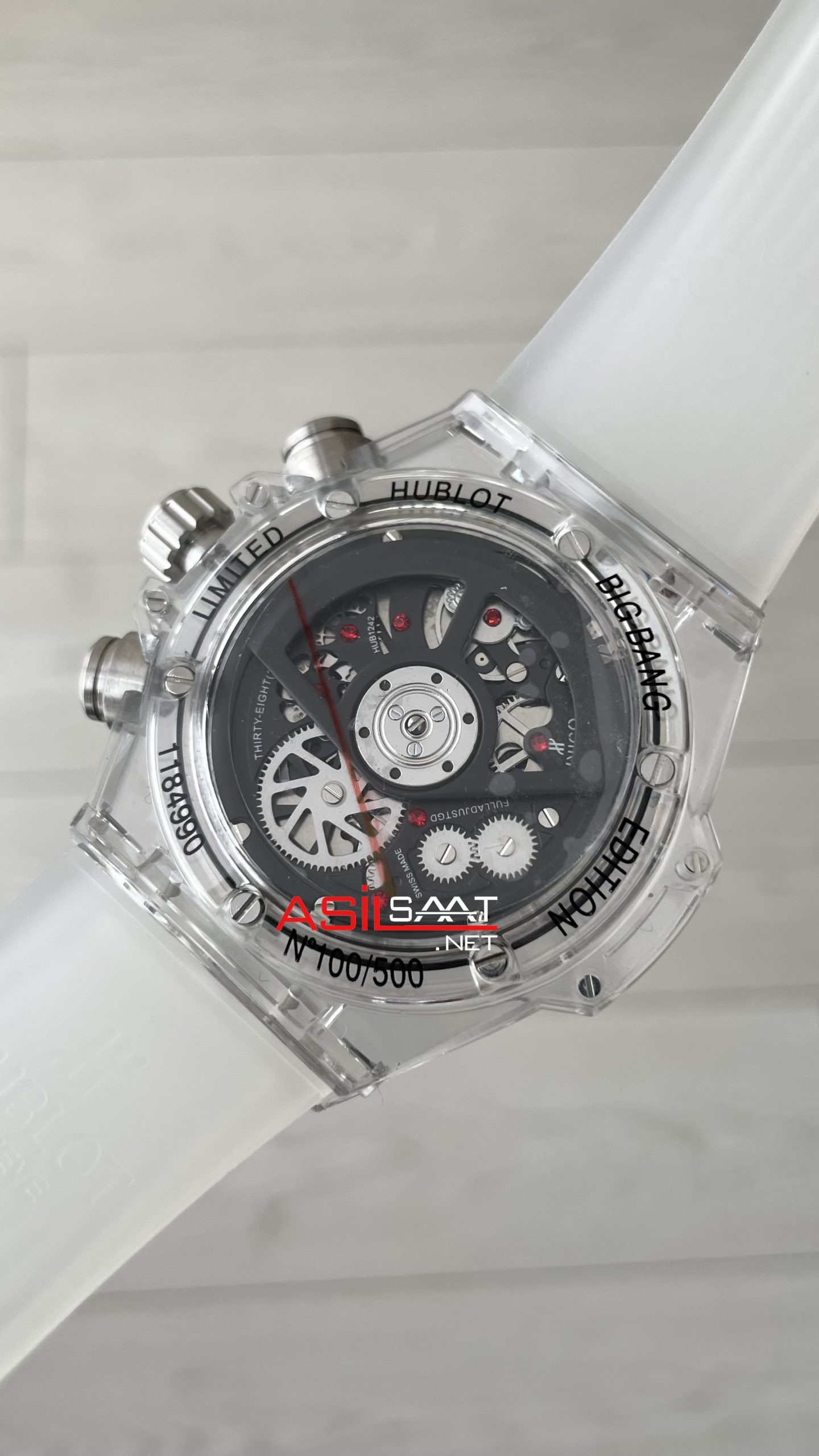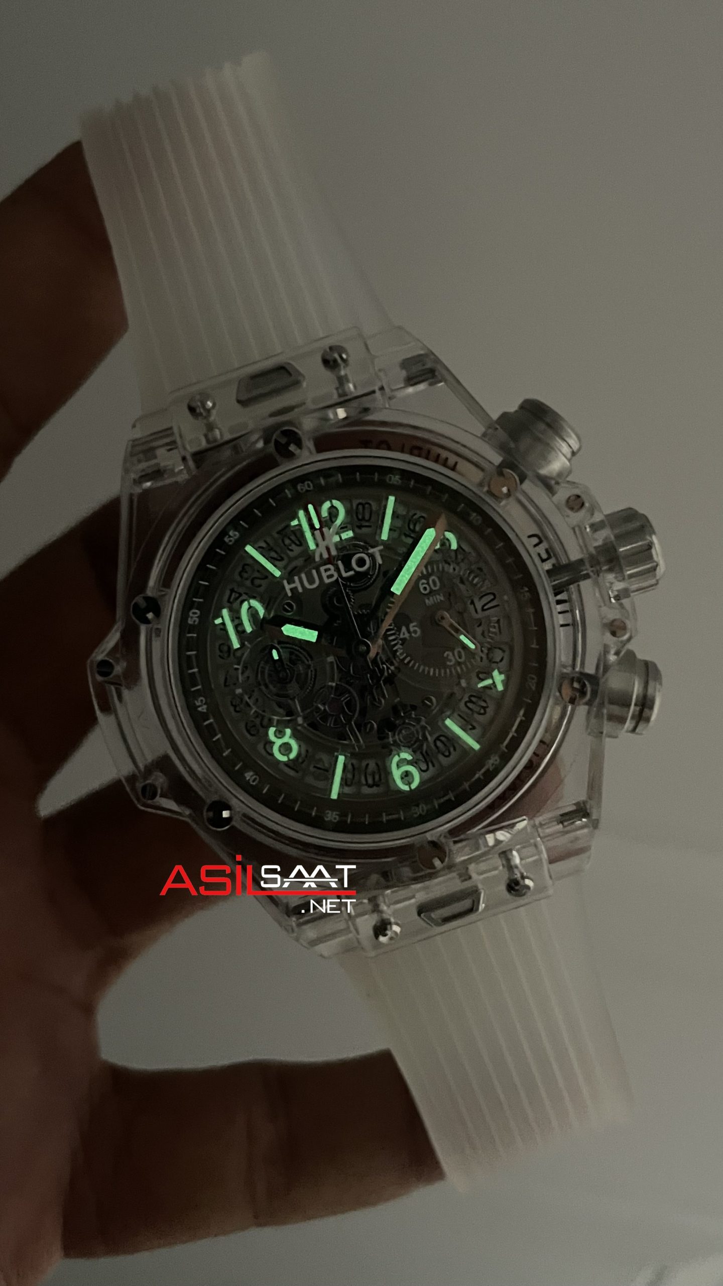 Hublot Unico Sapphire 42mm Şeffaf Replika Saat modeli, kendine has tarzıyla şeffaf ve çelik kalın yuvarlak kasası, kauçuk kayışı, çift katmanlı safir camı, çekmeli tepesi (kurma kolu), pilli vk64 mekanizması, katlanabilir tokası, mikron ayrıntıları ve fosforlu indexleri ve 44mm kasa çapı ölçüsü ile en çok talep edilen modellerimizden biri olmayı başarmıştır. Bu saatin paslanmaz çelik kasası ve kauçuk kayışıyla dayanıklılığı, sağlamlığı ve kullanım kolaylığını bir arada sağlayarak saatin kullanımını daha keyifli ve kolay hale getiriyor.