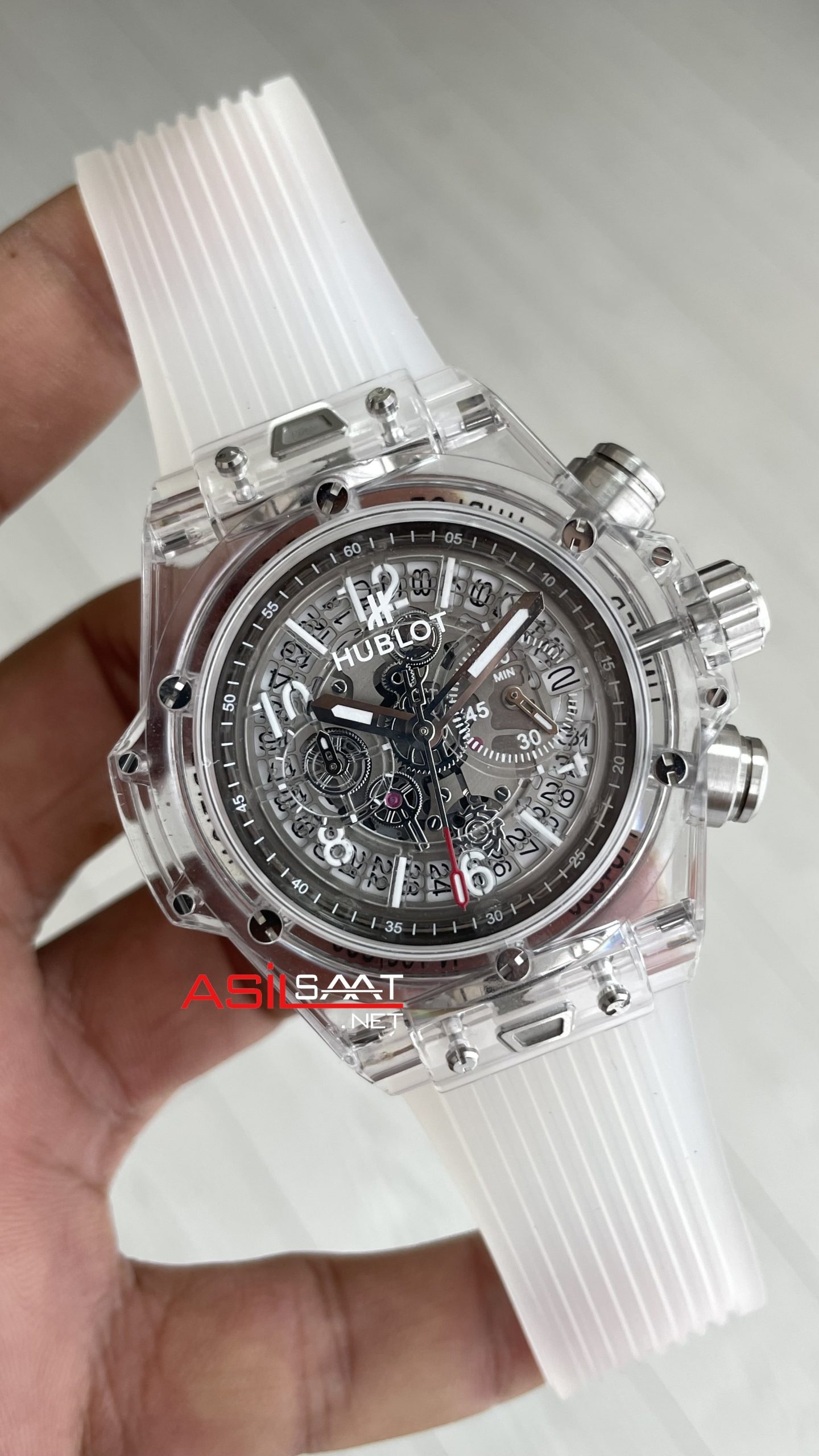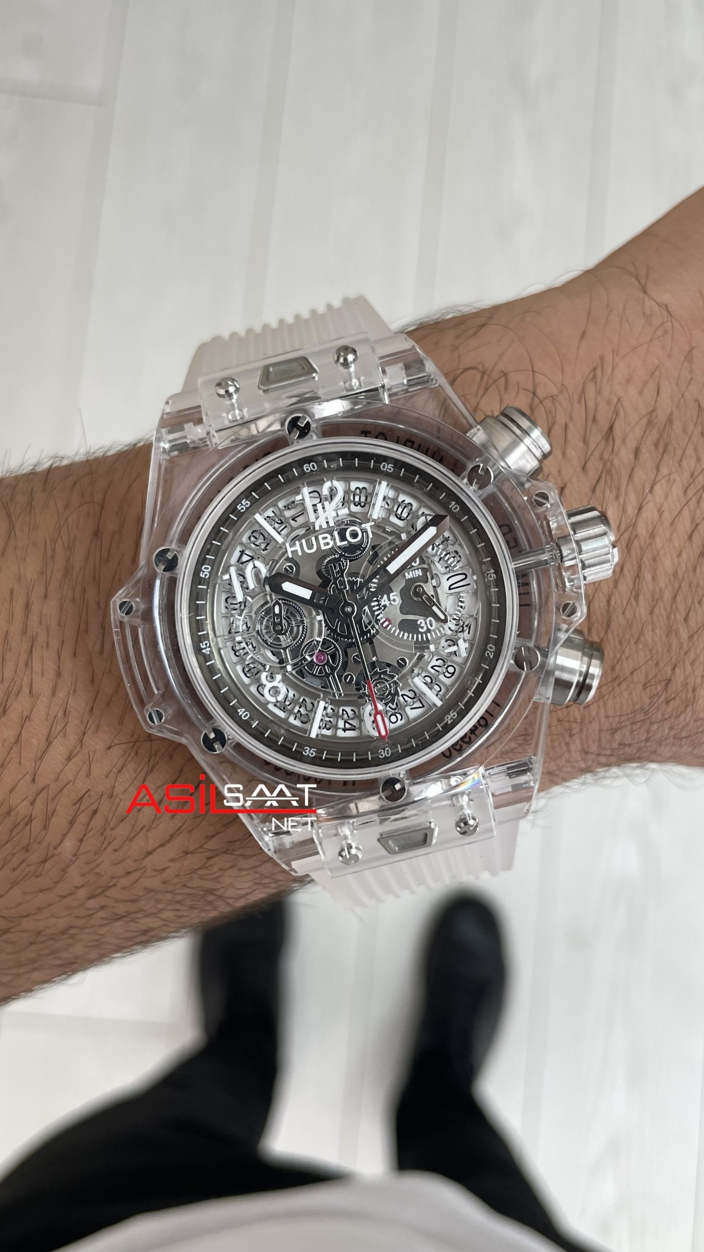 Hublot Unico Sapphire 42mm Şeffaf Replika Saat ! Güçün ve Cesaretin Efsanevi Buluşması
