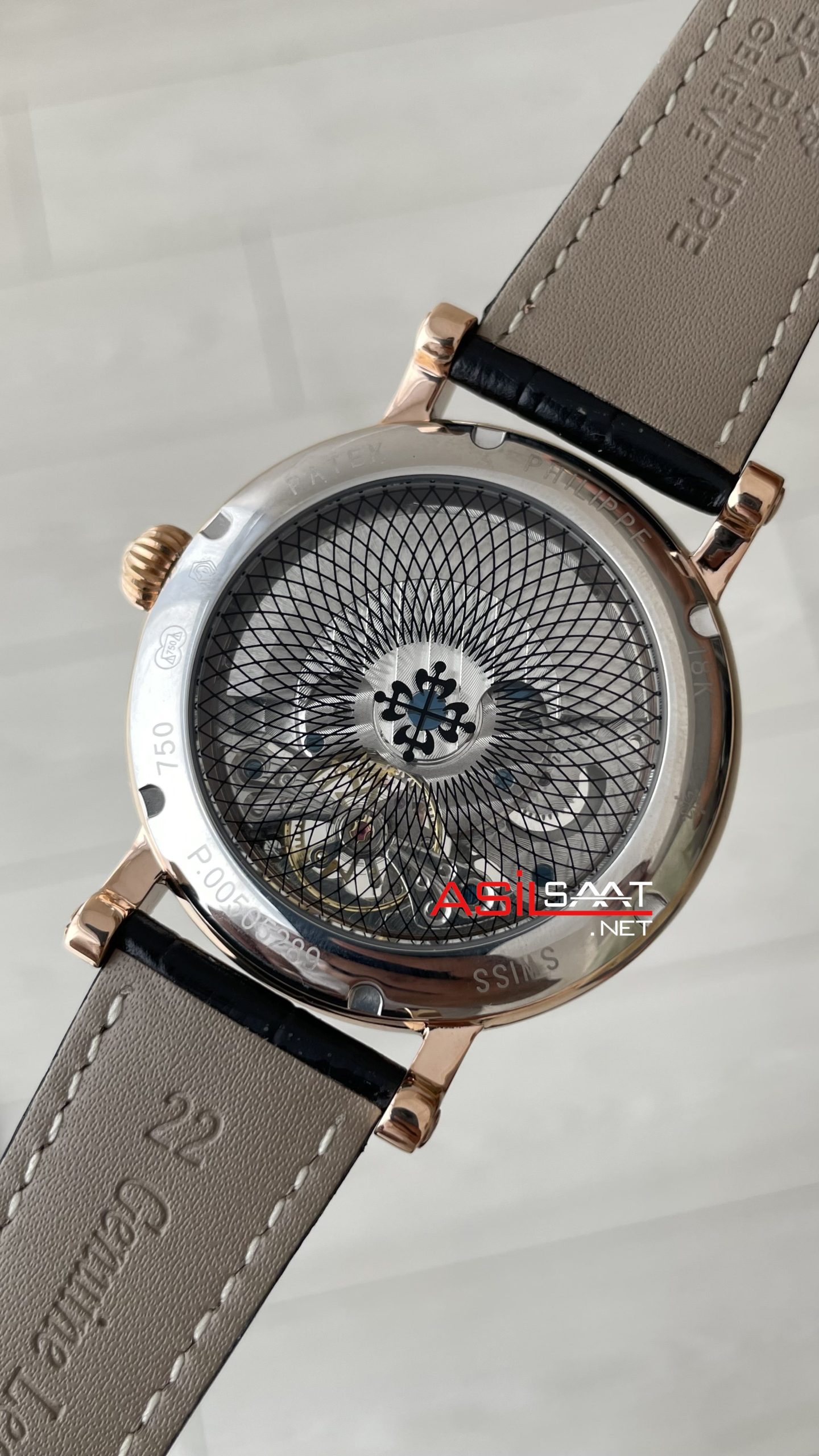 Patek Philippe Geneve Tourbillon Moonphase Skeleton Siyah Kadran 42 mm İskelet Rose Replika Saat ! tasarımında lüksün ve mekanikliğin zarafetin simgesi