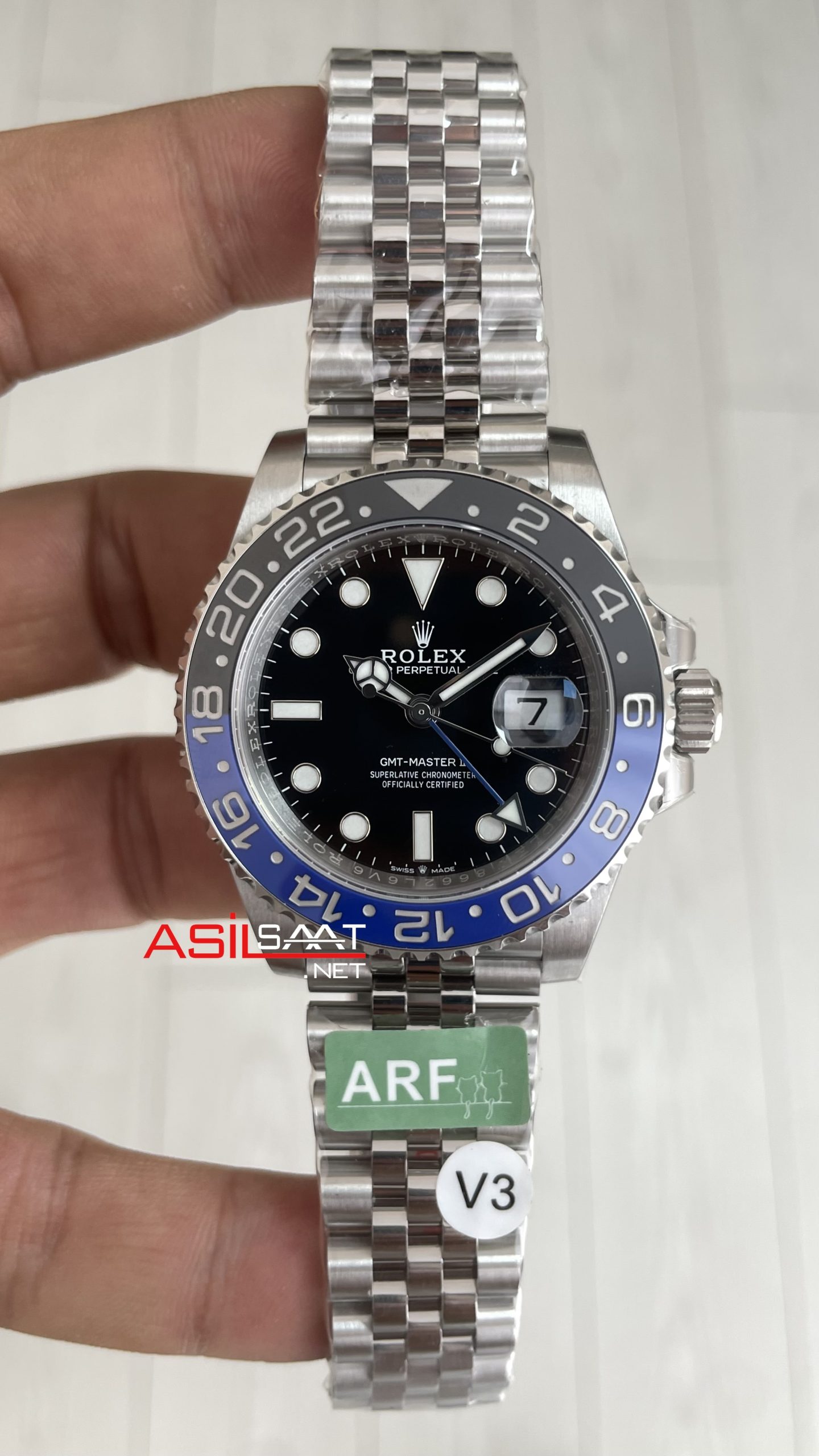 Rolex Batgirl Gmt Master II 126710BLNR Jubilee 40mm 3285 AR Factory V3 Super Klon Eta Swiss modeli, kendine has tarzıyla slim yuvarlak ve parlak çelik kasası, ince dilimli parlak çelik jubilee bileziği, çift tarafa döndürülebilen çift renkli çelik çerçeveli cerachrom seramik bezeli, çift katmanlı cyclops büyüteçli safir camı, üç noktalı vidalı tepesi (kurma kolu), 70 saat rezervli otomatik mekanizması, ek uzatmalı ve katlanabilir klipsi,siyah kadranı ve fosforlu indexleri ve 40mm kasa çapı ölçüsü ile en çok talep edilen modellerimizden biri olmayı başarmıştır. Bu saatin paslanmaz çelik kasası ve paslanmaz çelik bileziğiyle dayanıklılığı, sağlamlığı ve kullanım kolaylığını bir arada sağlayarak saatin kullanımını daha keyifli ve kolay hale getiriyor.
