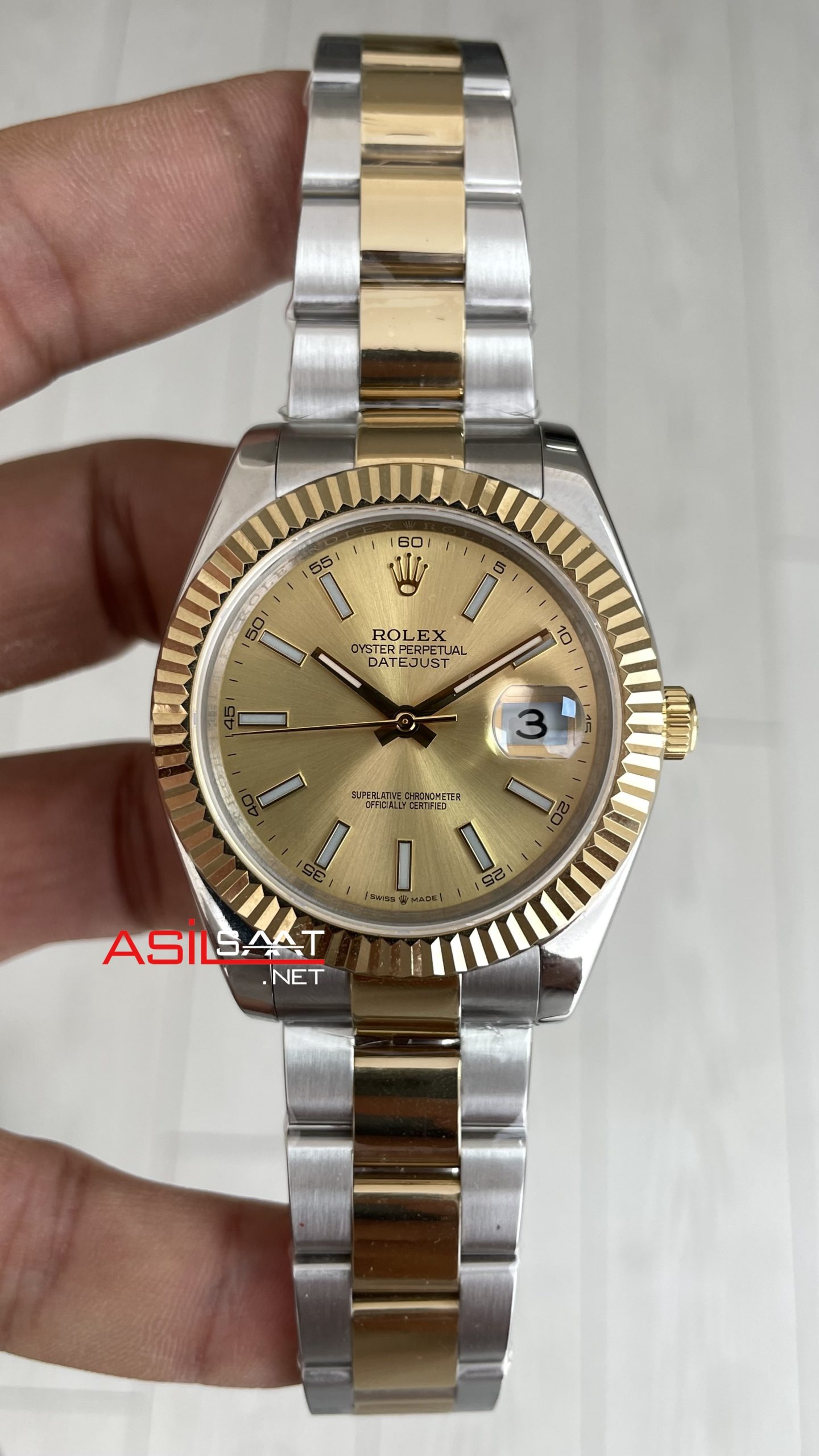 Rolex Datejust Champagne 126333 Oyster Two Tone Gold Şampanya Kadran 41mm Replika Saat
