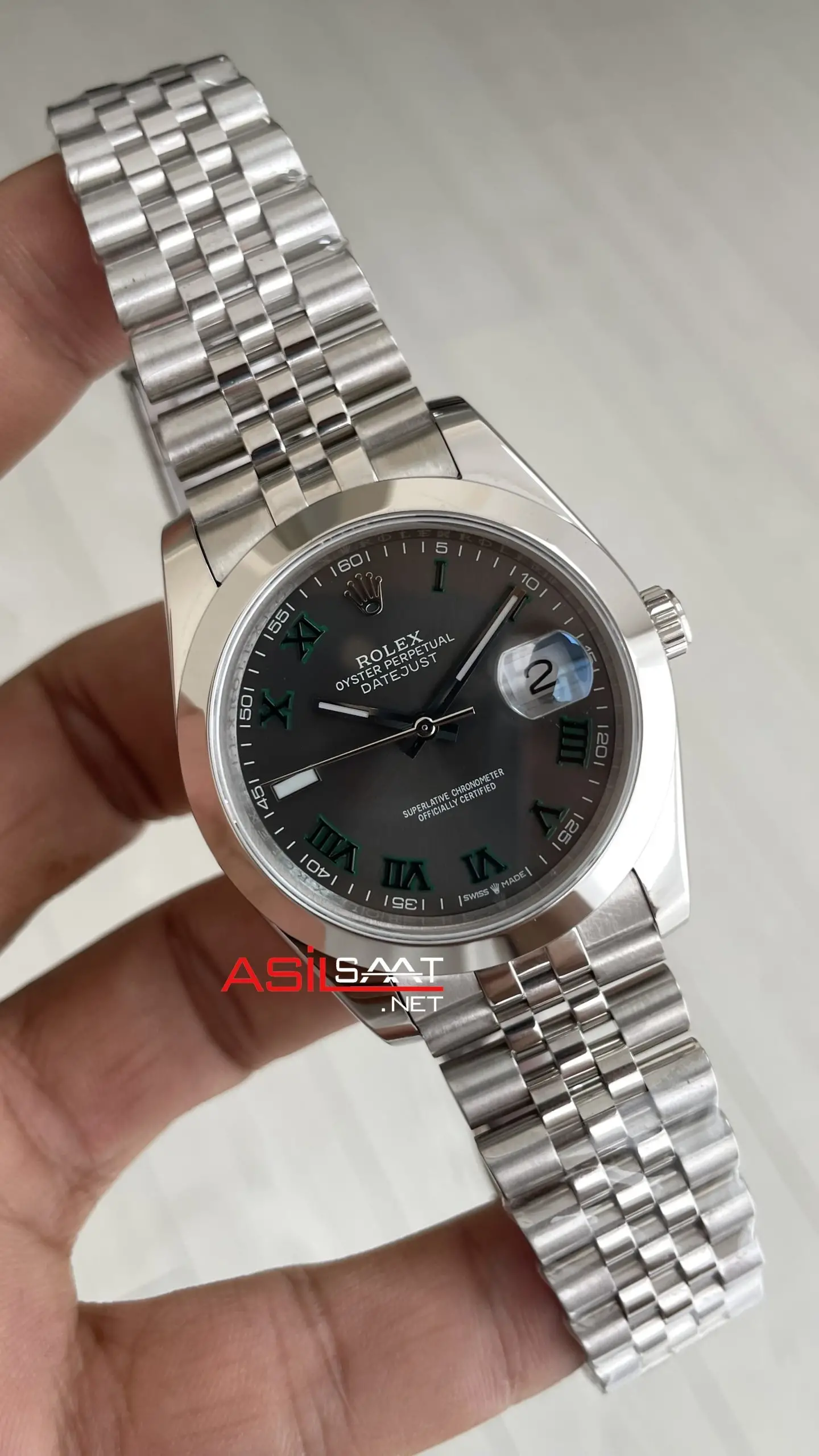 Rolex Datejust Wimbledon 126300 Smooth Bezel Jubilee 41mm Replika Saat modelinde kadran tasarımında ki, yeşil renkli romen rakamlı indexleri, akrep ve yelkovanının berraklığını markanın imza niteliğinde olmasıdır ve beyaz & mavi fosforlu ibreleriyle kusursuz uyum içindedir. Gri kadran rengi sakin ve güvenilir bir görünüm sunmayı seven erkekler için ideal bir seçenek ve her anınıza ayrıcalık katacaktır.