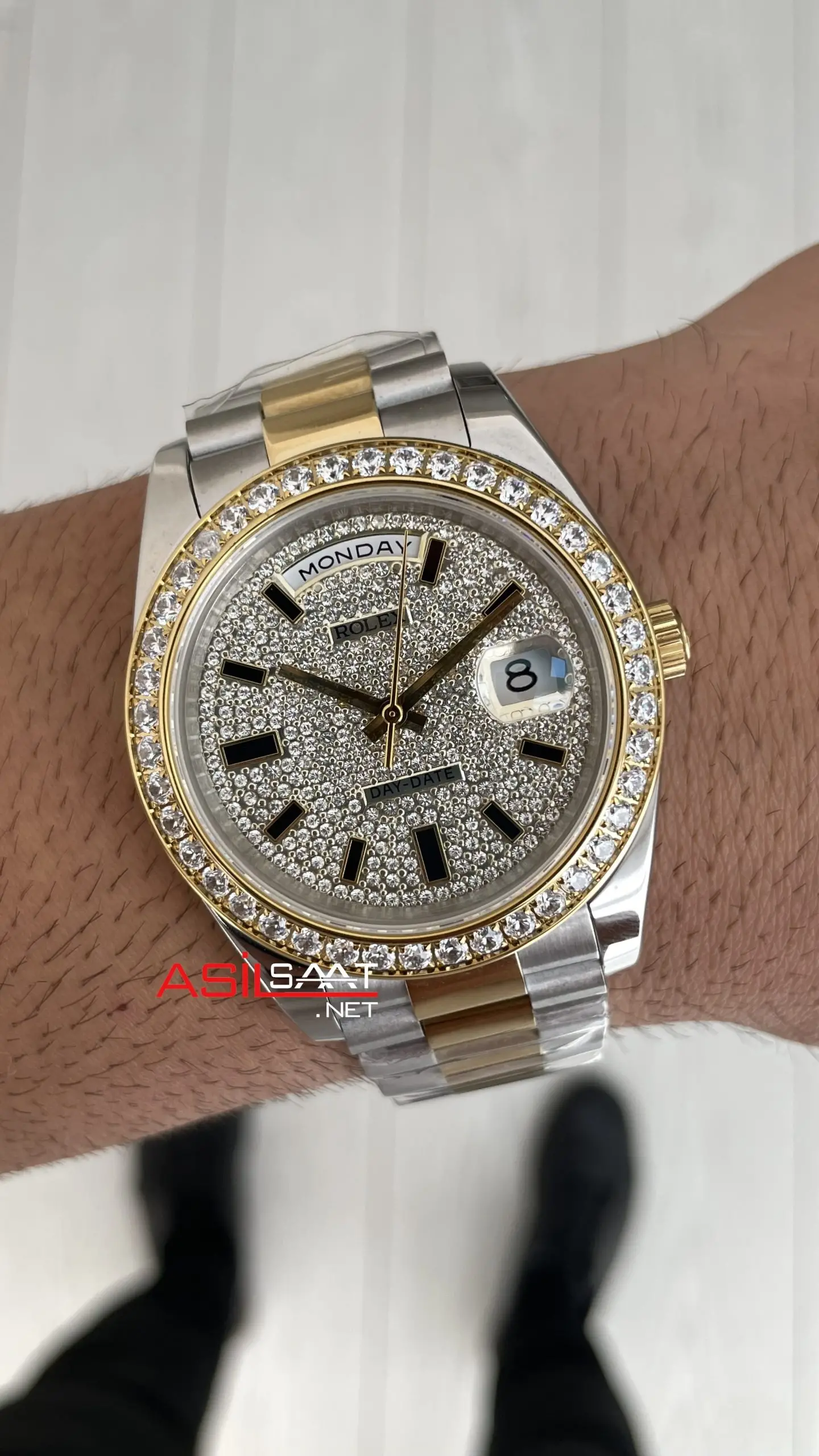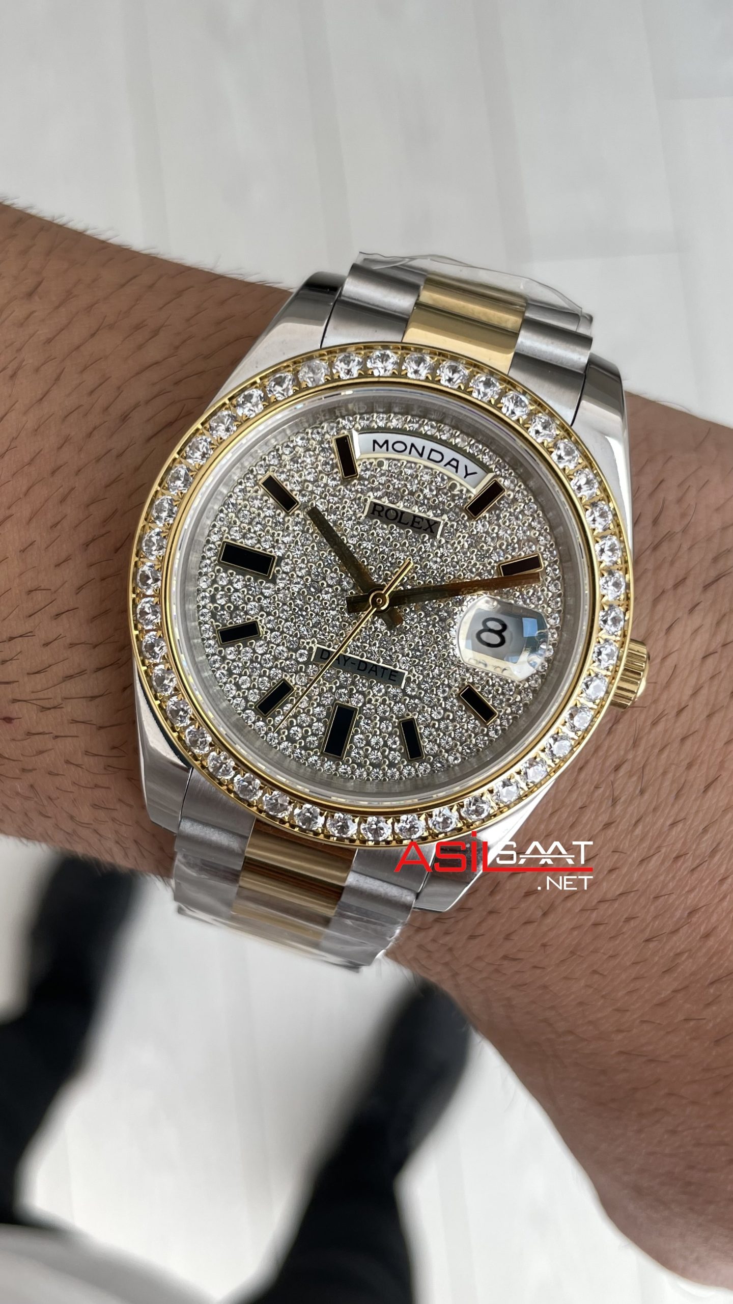 Rolex Day Date Pave Baguette Diamond 40mm Taşlı Kadran Two Tone Gold Replika Saat ! Lüksün ve Prestijin Buluştuğu Nokta