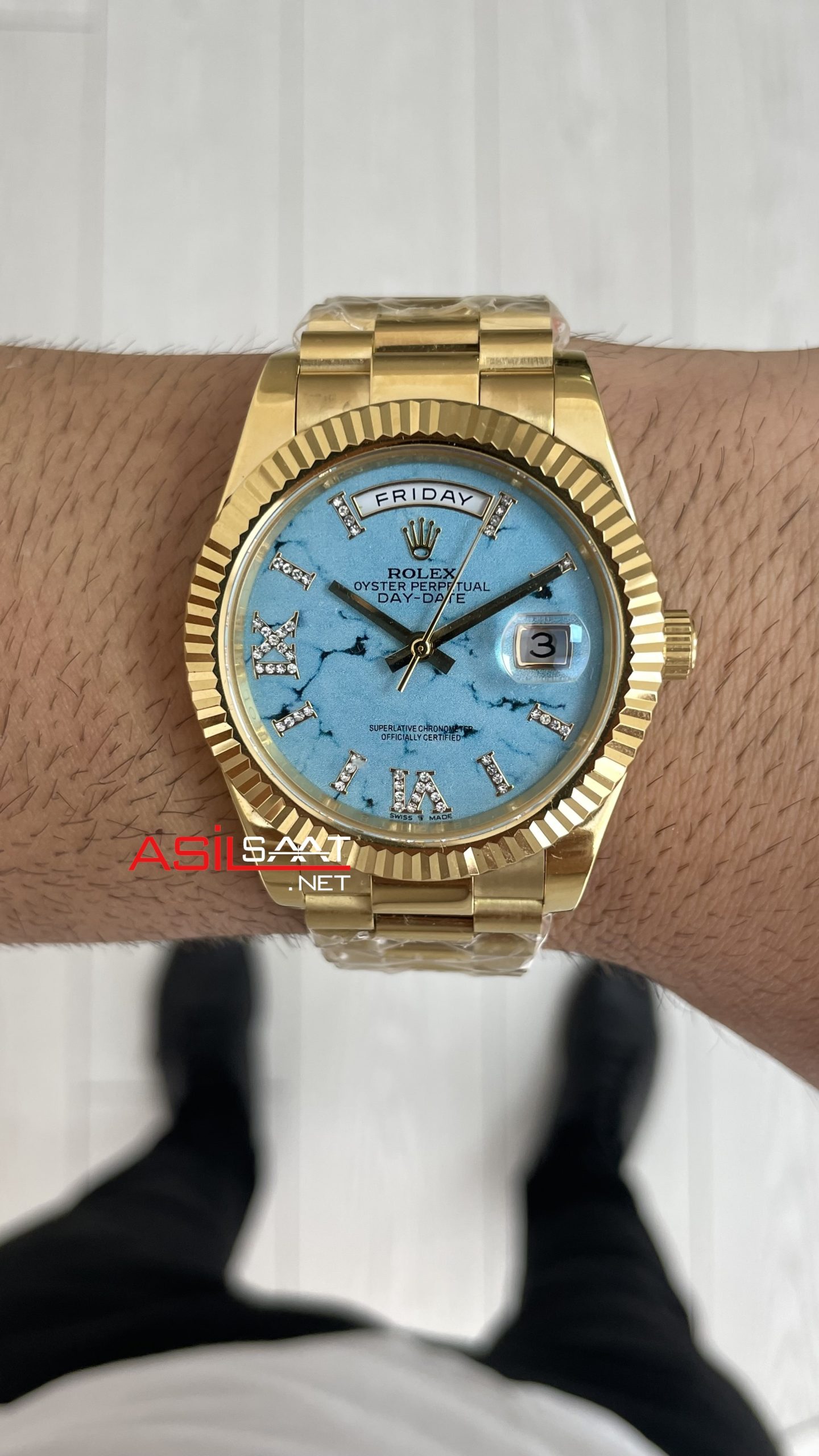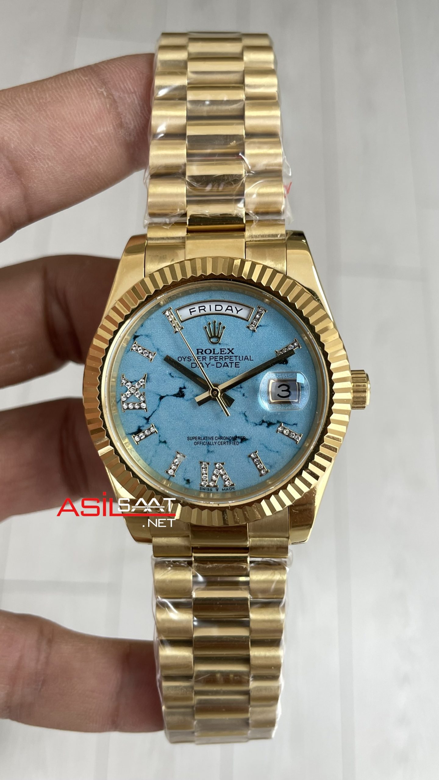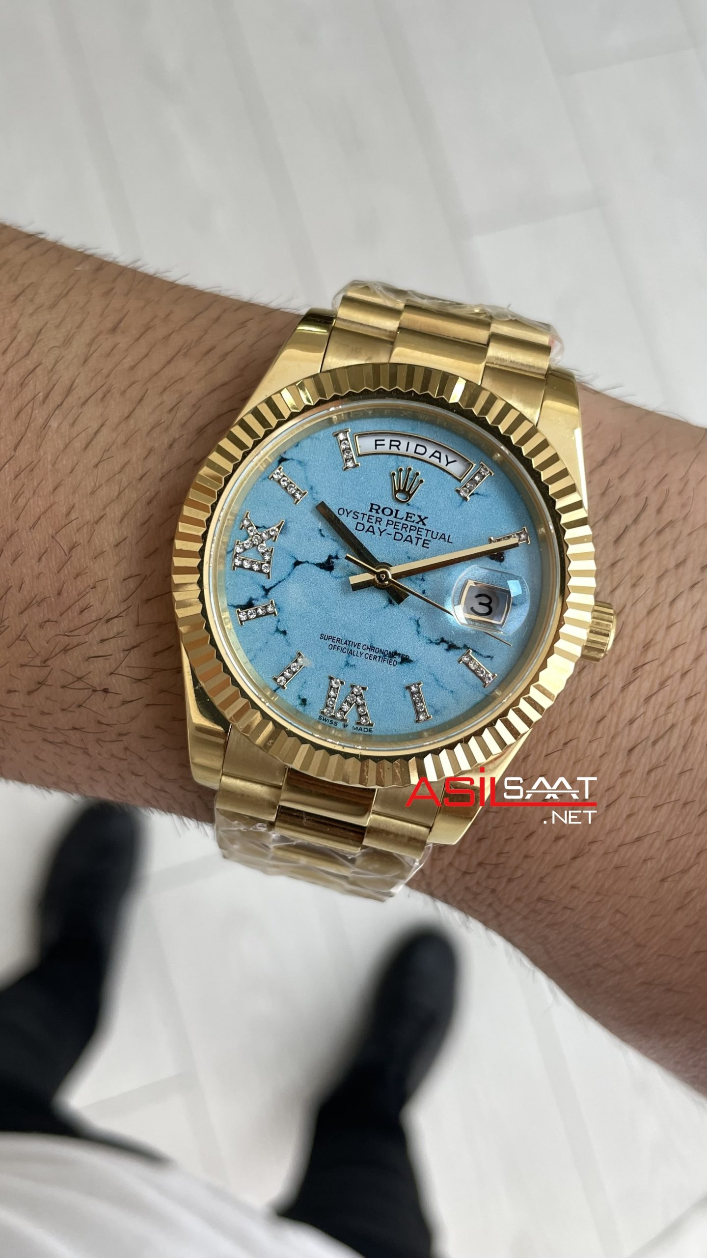 Rolex Day Date Turkuaz 128238 Turquoise Diamond Roman Dial Gold 40mm Replika Saat ! Lüksün ve Prestijin Buluştuğu Nokta