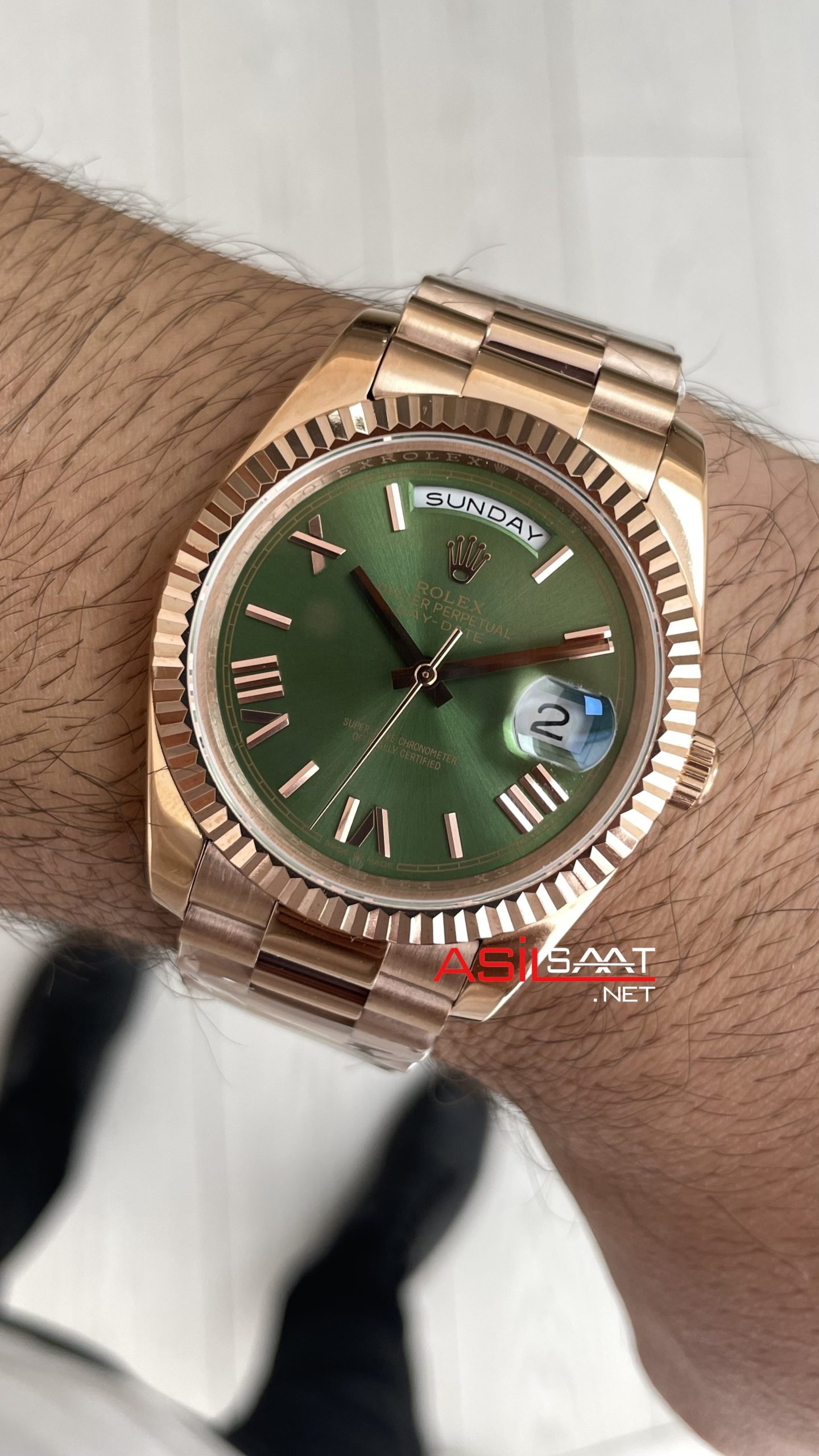Rolex Day Date Yeşil 228235 Olive Green 40mm Rose Replika Saat ! Lüksün ve Prestijin Buluştuğu Nokta