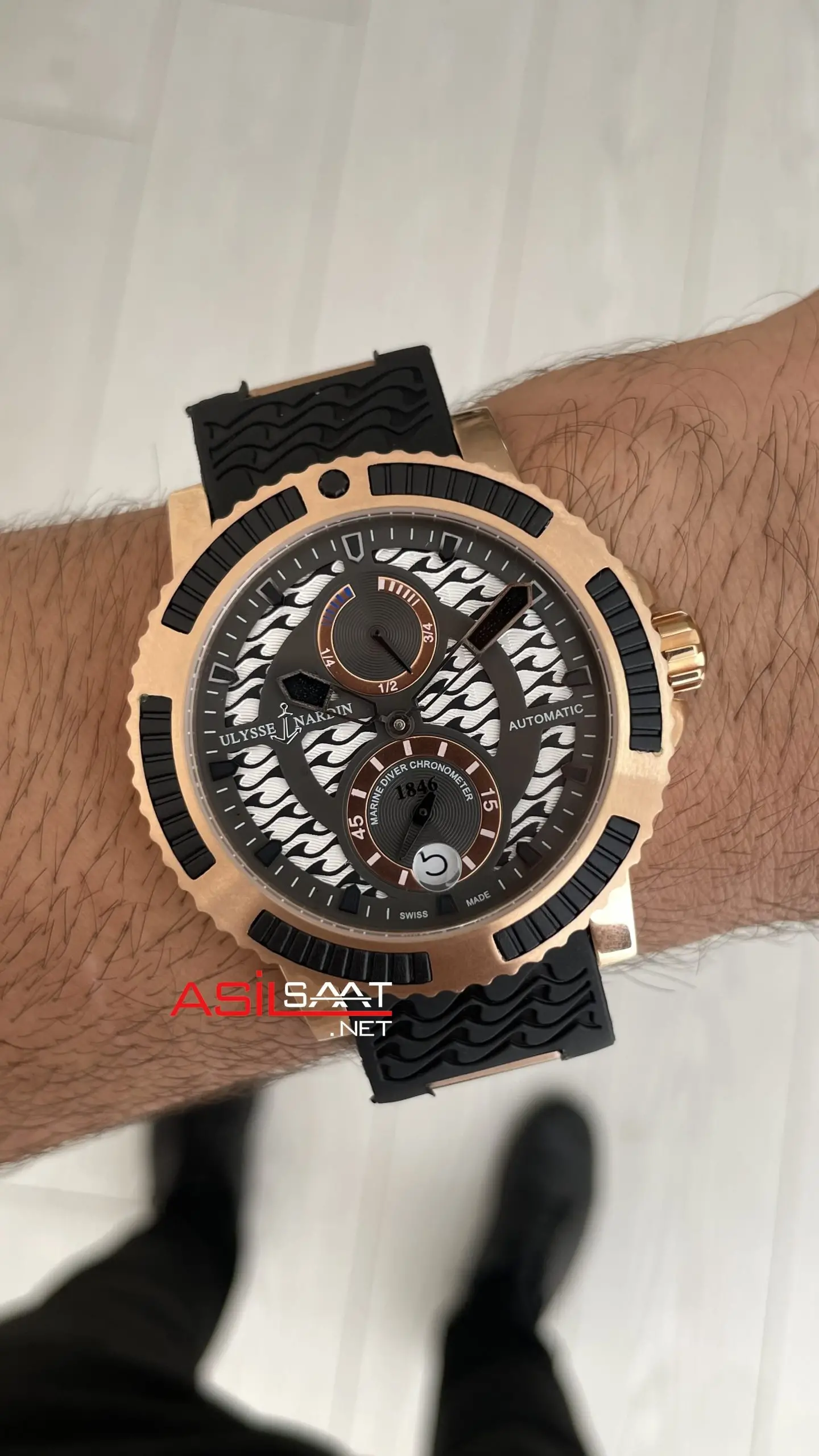 Ulysse Nardin Marine Diver Chronometer Siyah Kadran Rose 43mm Replika Saat modeli, kendine has tarzıyla yuvarlak ve parlak çelik kasası, kauçuk kordonu, çift katmanlı büyüteçli safir camı, tepesi (kurma kolu), otomatik mekanizması, power rezerv ve saniye kronometreli kadranı ve mat indexleri ve 43mm kasa çapı ölçüsü ile en çok talep edilen modellerimizden biri olmayı başarmıştır. Bu saatin paslanmaz çelik kasası ve kauçuk kordonuyla dayanıklılığı, sağlamlığı ve kullanım kolaylığını bir arada sağlayarak saatin kullanımını daha keyifli ve kolay hale getiriyor.